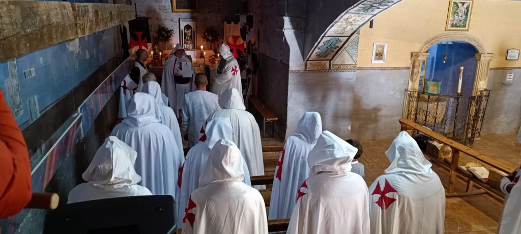 Nuestra casa materna es la humilde iglesia templaria de Bordón, en la provincia de Teruel, donde realizamos esa pasa fundamental en la nueva vida del postulante. Un templo muy especial para nosotros. Esta iglesia fue fundada por los pobres caballeros del Cristo y bajo la clave de bóveda de su capilla de San Miguel se inicia a los nuevos hermanos. La sagrada cruz de 8 puntas preside este acto solemne.